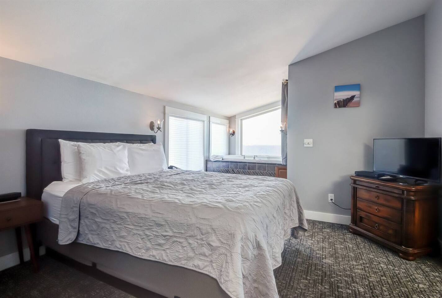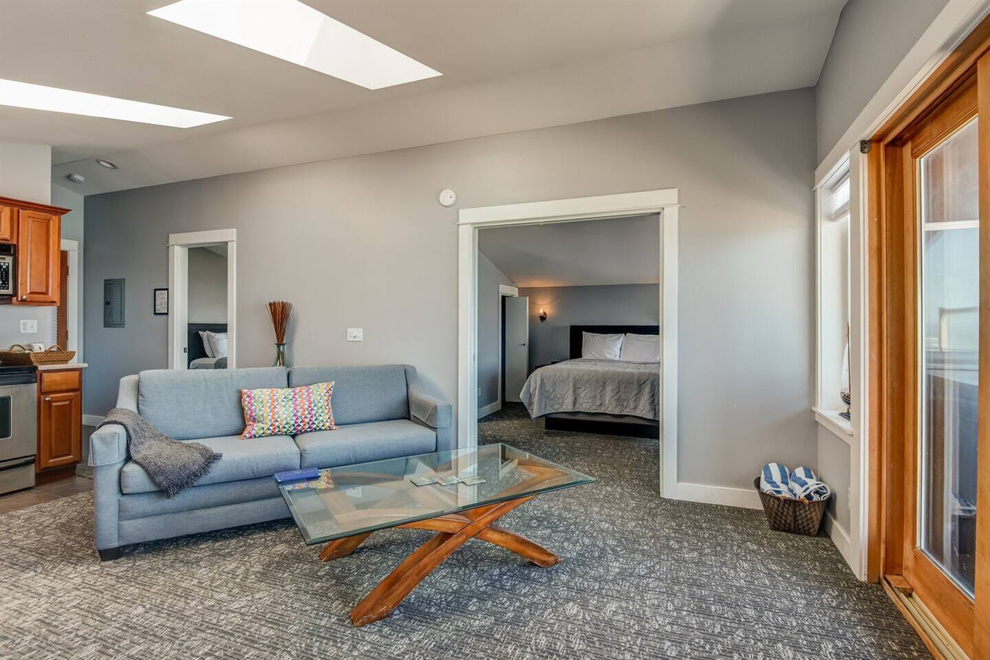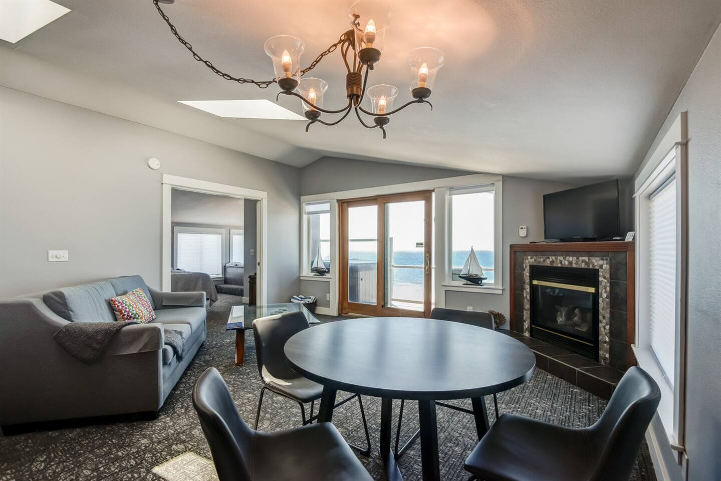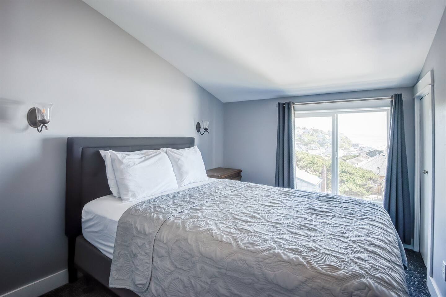 The top floor is yours in the penthouse of Sweet Haven Nelscott Manor! 2 bedrooms, 2 bathrooms, full kitchen. Host up to 4 with panoramic views of the Pacific coastline, private master suite with 2-person luxury jetted tub, and outdoor hot tub. Pour yourself a glass, and sink into the hot tub to watch the whales breach under the sunset. To ensure the serene atmosphere our adult guests expect, we welcome individuals 18 years older. Four sets of stairs are required to access the penthouse.
