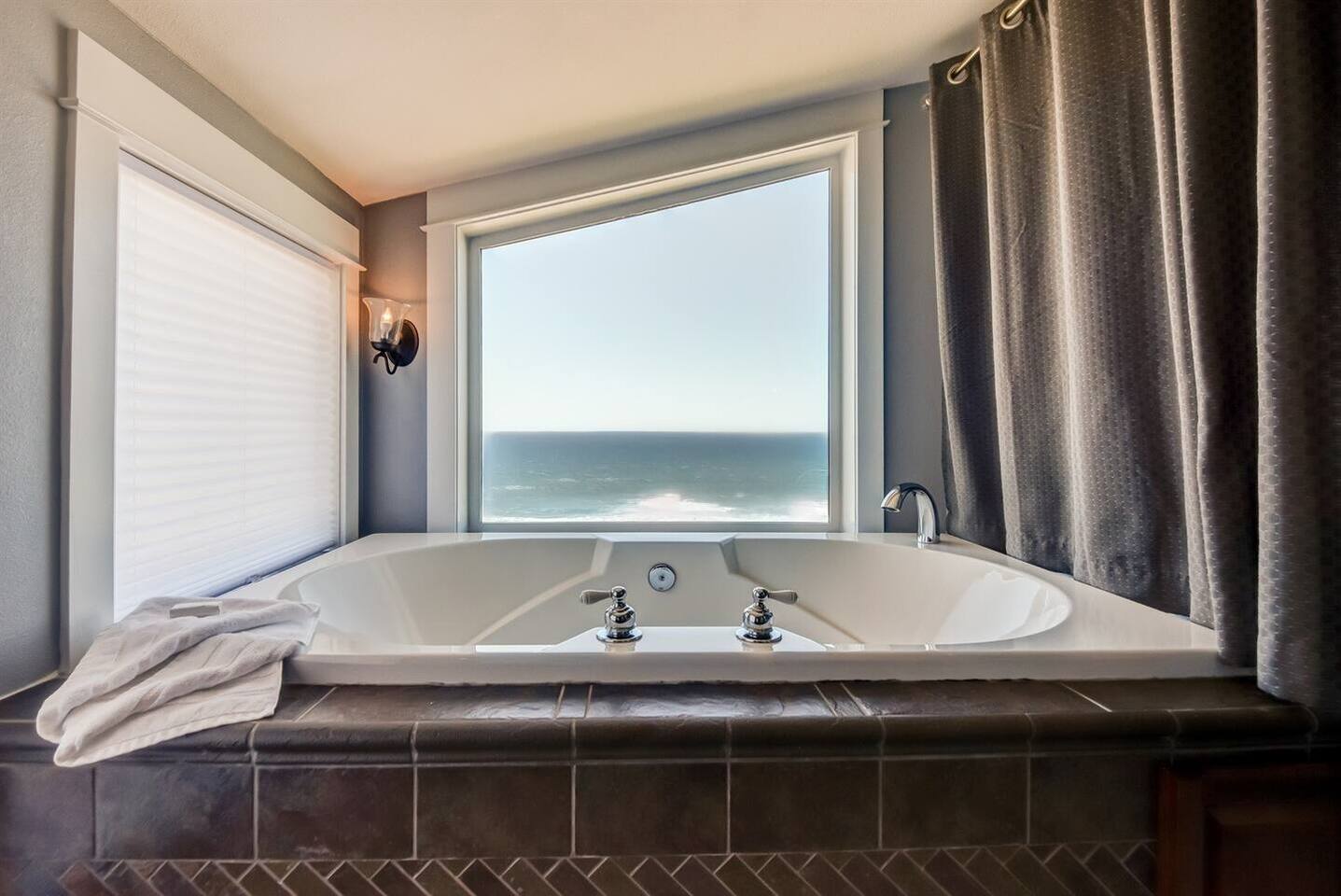 HOT TUB - Oceanfront, top-floor, open-air tub with incredible panoramic views of the beach, Nelscott Reef, sunsets, and night skies JETTED TUB - Indoor 2-person luxury jetted tub with panoramic views FULL KITCHEN - Whip up a gourmet breakfast and enjoy some great coffee with your sunrise rainbow views