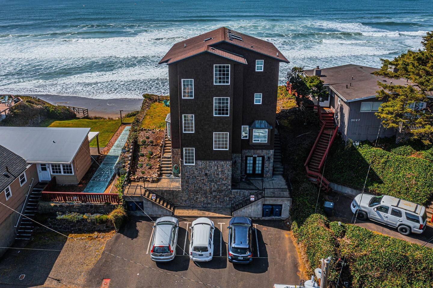 From Highway 101, turn west onto SW 32nd Avenue (about 1/2 mile south of the Factory Outlet Mall). At the end of SW 32nd, turn right on SW Anchor Avenue. The building is very tall and has stone around the bottom level and cedar shingles on the top levels. There is NO sign on it. The hotel is located at 3037 SW Anchor Avenue. There is no onsite office.