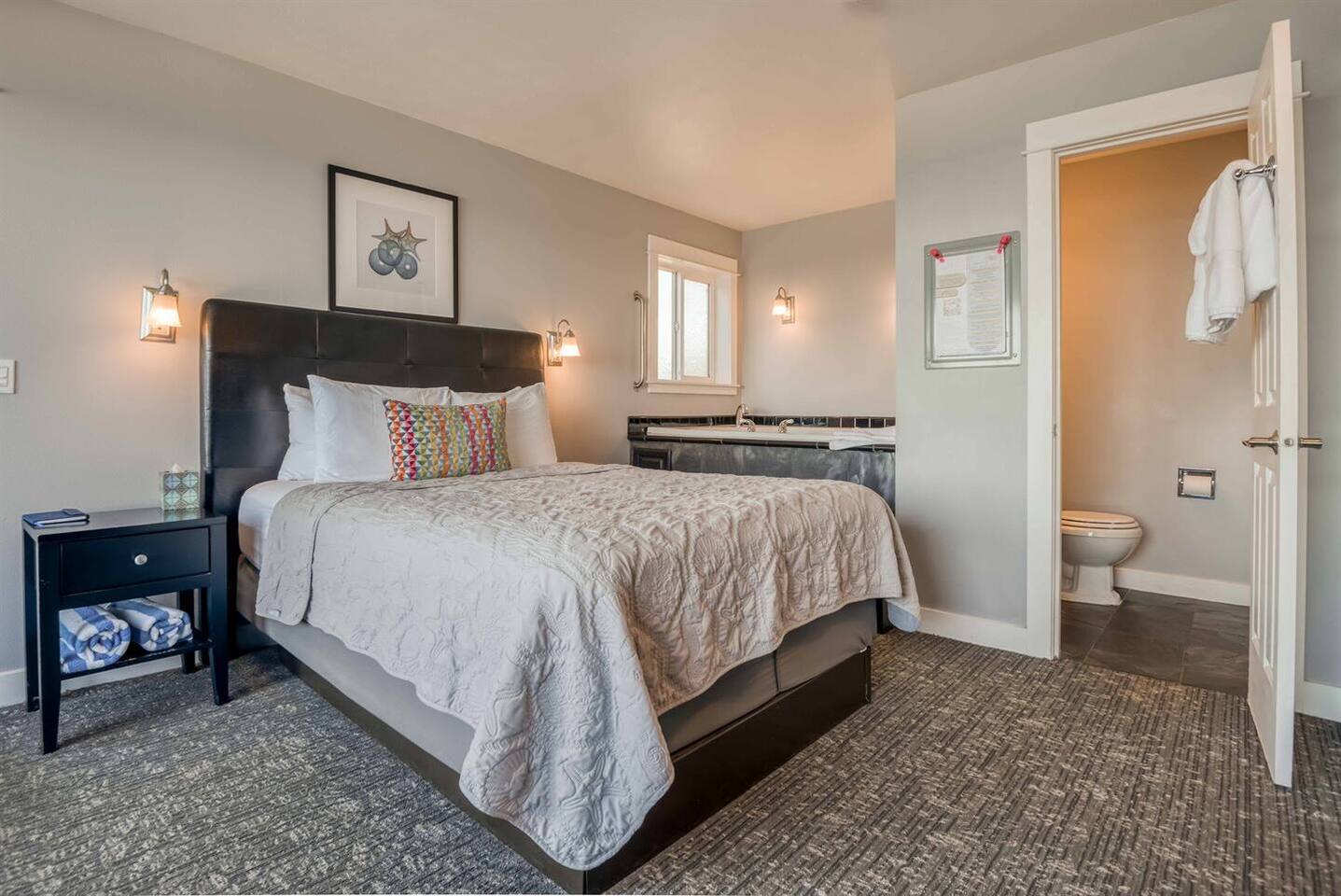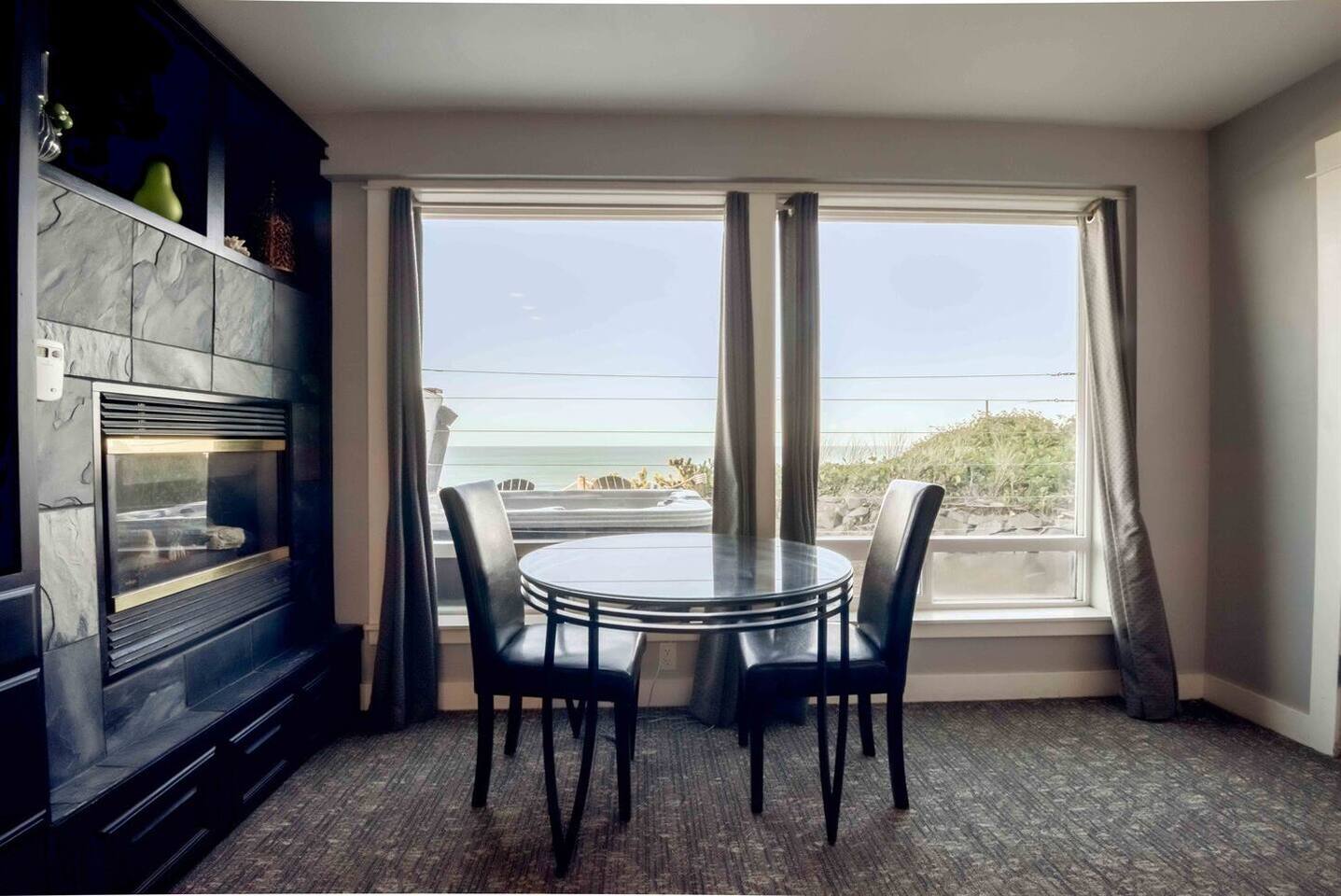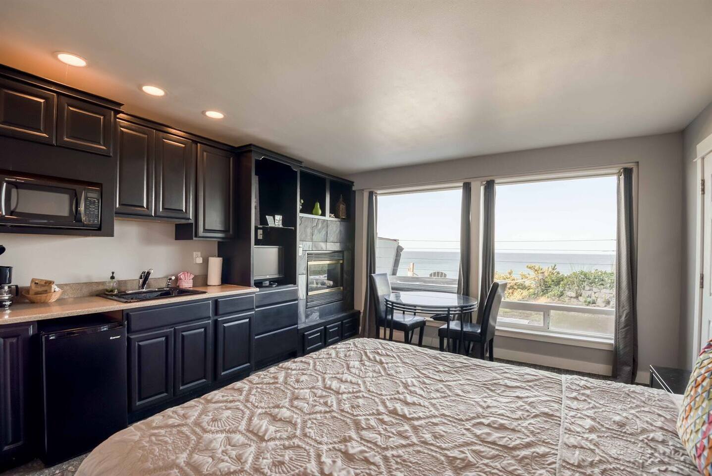 Cozy oceanfront room with the sophistication of a city condos. Miles of beach views, waves & sunsets. View the stars from your oceanfront hot tub. * Studio style 1 king bed and 1 bath * Oceanfront hot tub * 2-person inside whirlpool tub with ocean view * Custom gas fireplace * Kitchenette with mini-fridge, microwave, coffee-maker * 2-headed shower To ensure the serene atmosphere our adult guests expect, we welcome individuals 18 years older. Requires 2 sets of stairs.